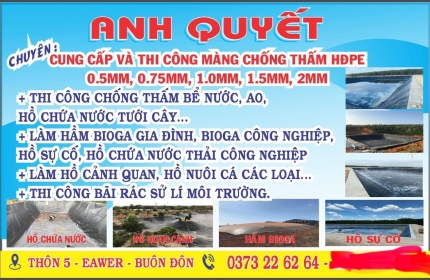 Màng chống thấm HDPE là vật liệu chống thấm hàng đầu hiện nay, được ứng dụng rộng rãi trong các công trình như: bể chứa nước, ao nuôi thủy sản, hầm biogas, bãi rác, hồ cảnh quan, đập nước… Tuy nhiên, để phát huy tối đa hiệu quả của màng HDPE, việc thi công đúng kỹ ...